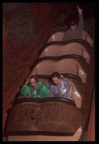 Oh, and not a crazy ride but it was freezing cold at night and Amanda convinced me Splash Mountain would be a really good thing to do. Not! She told me they turn the water down when it gets cold… you’re floating in it… how can they ‘turn it down’???? She also told me it was Magical Disney Water and that I wouldn’t get wet… Not! If someone tells you about Magical Disney Water and how you don’t get wet… don’t believe them!!!!! Note in the picture the lack of people on the ride! The guy at the back is probably saying, “Look at me! I’m still dry!”