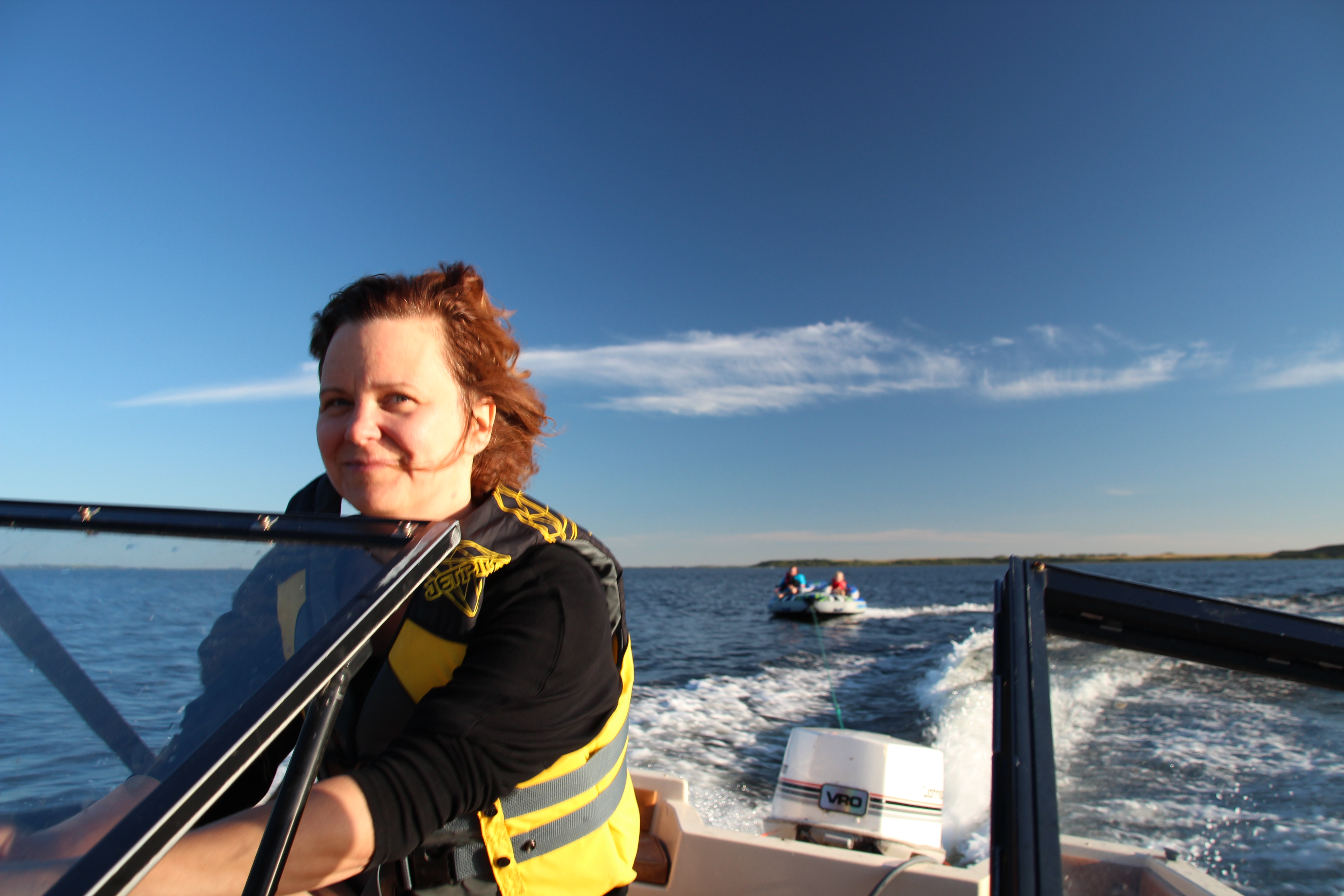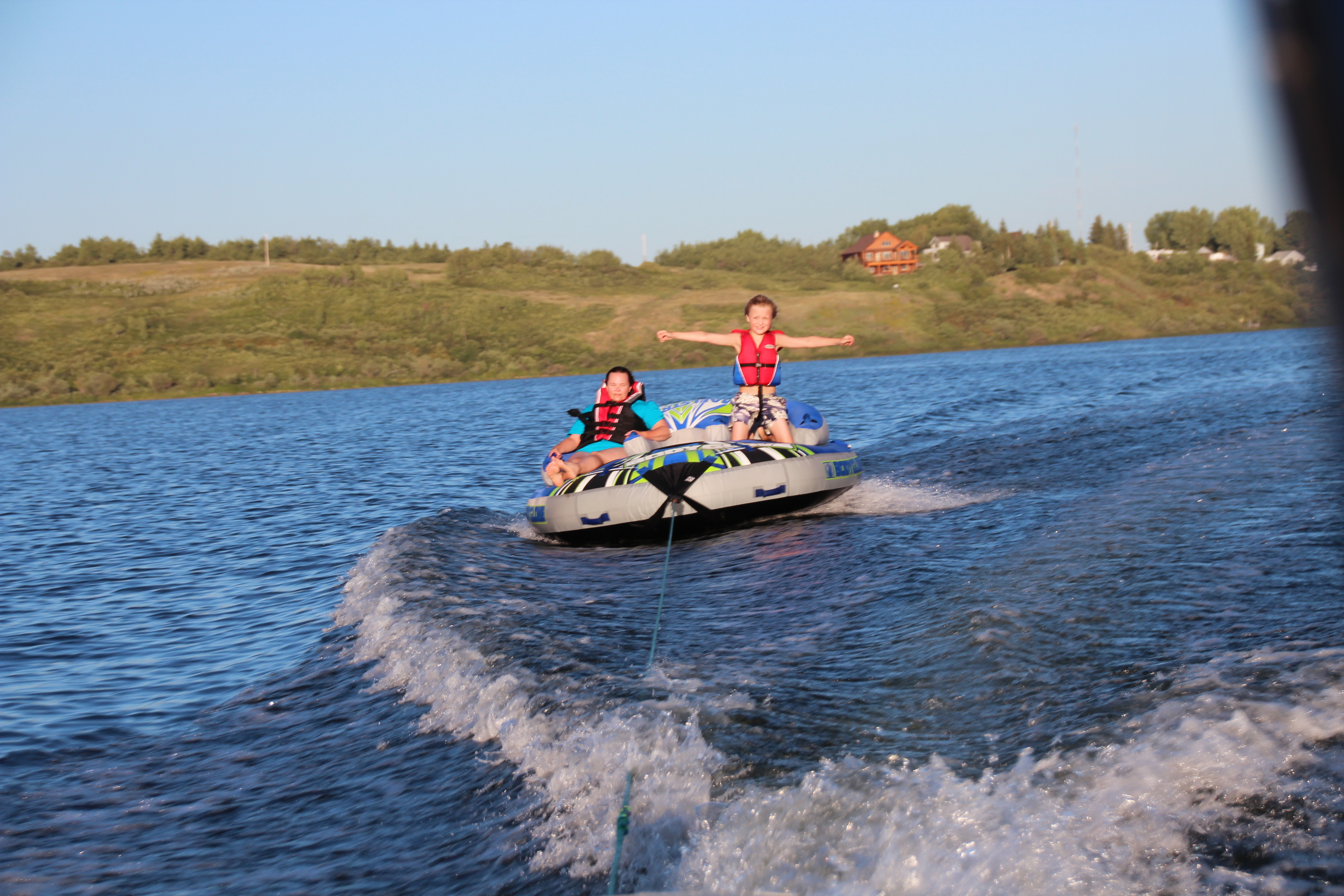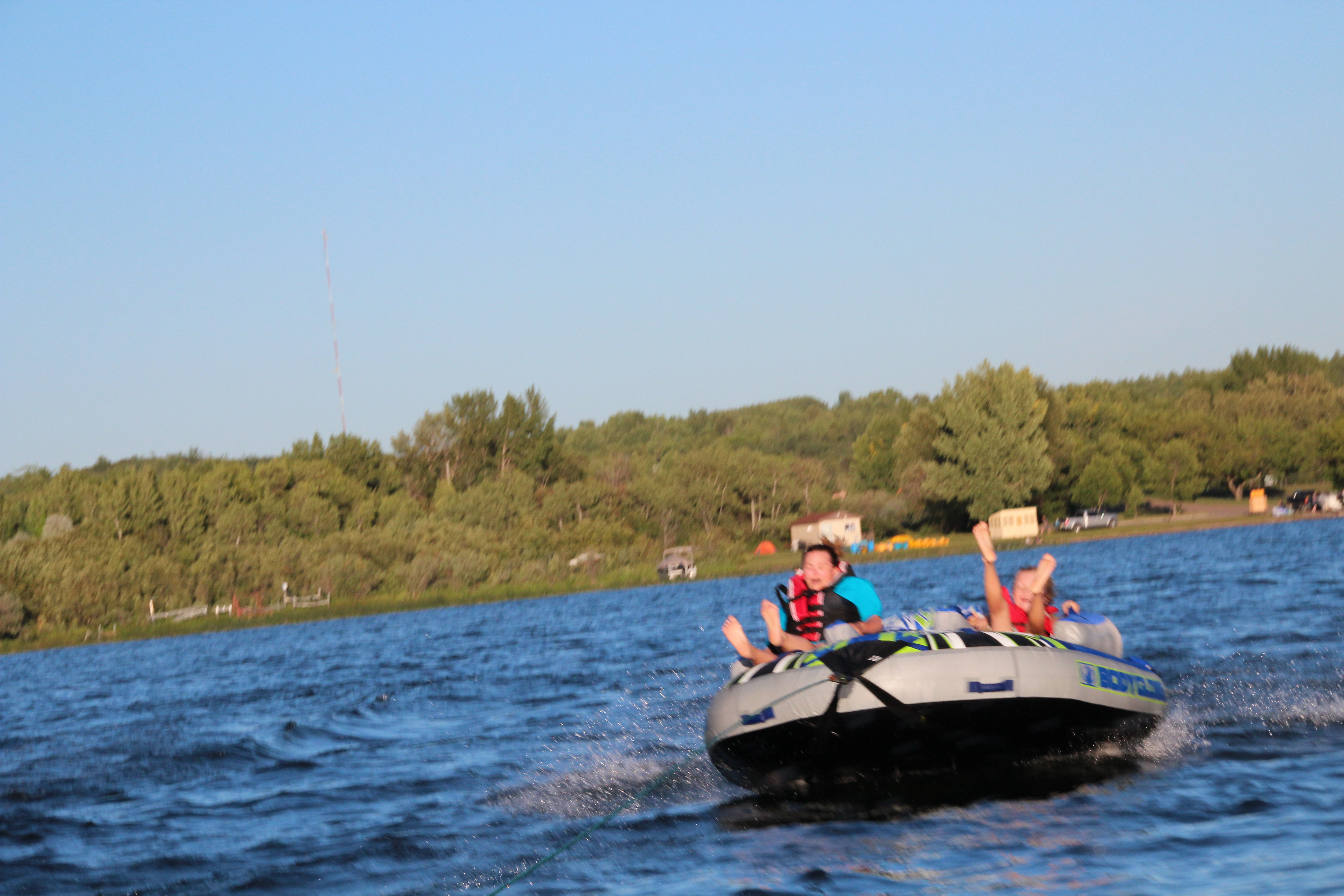 Loral towed us out into the middle of Jackfish Lake, and proceeded to try and kill me…. Ah, Crack the Whip, how I missed you! My other cousin Krista took pictures. None are great because Loral was driving like a maniac, but they prove I was there.